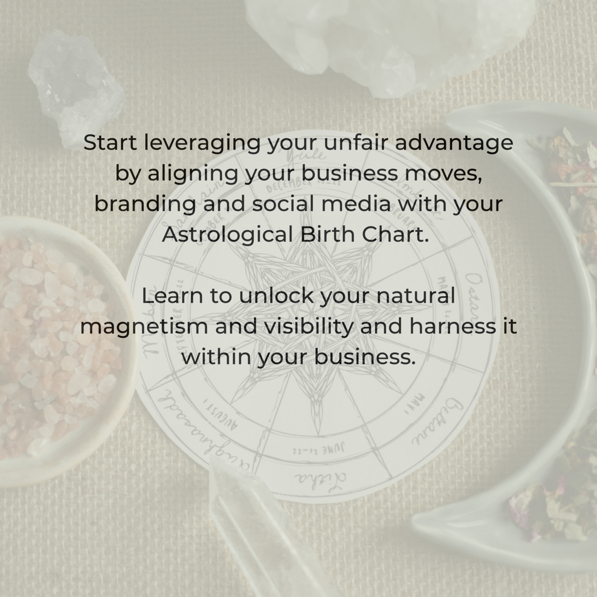 I am on a deep soul mission to help other spirit led, heart centred and intuitive entrepreneurs be seen, recognised and paid for their incredible gifts with Astrology, Subconscious Rewiring and Energetic Recalibration and beautifully Soul Aligned Branding.